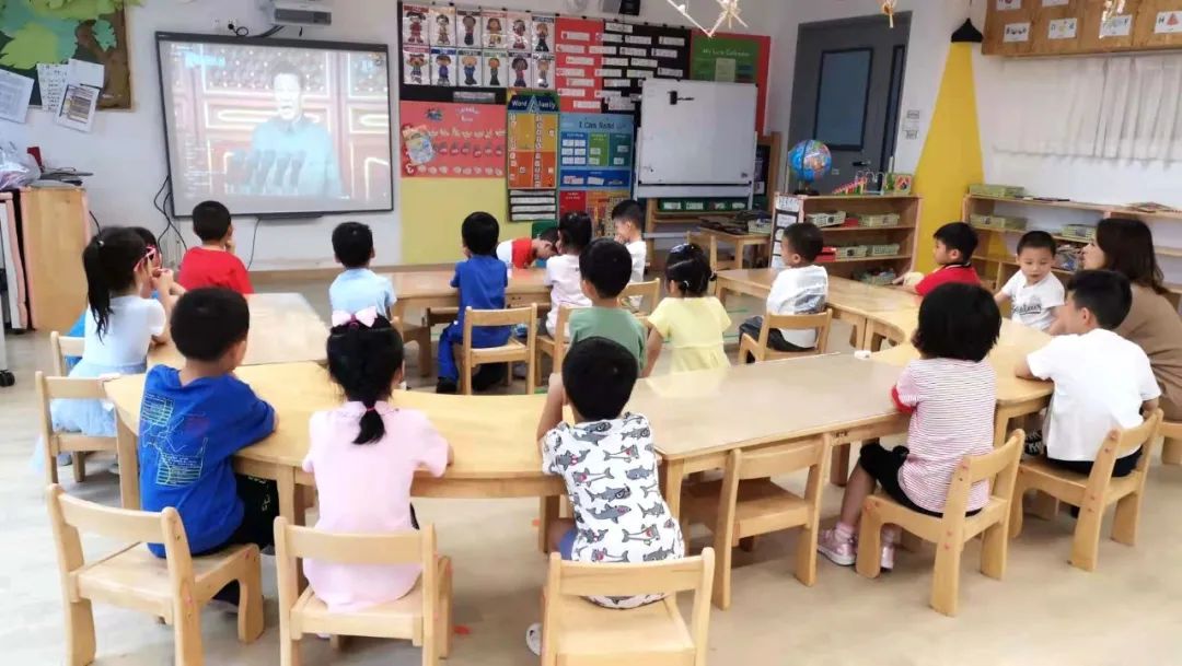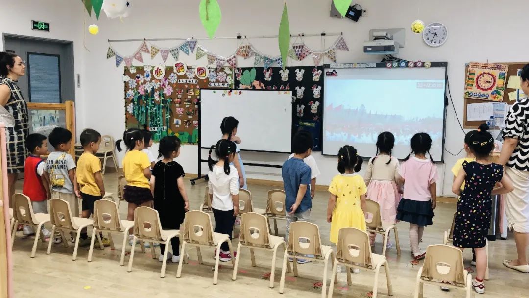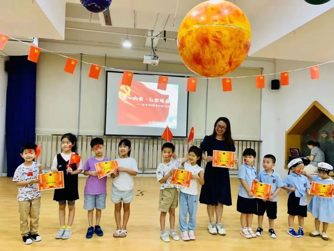 静安德英乐幼儿园本学期通过组织幼儿观看建党活动,国庆节前夕也将通过中国航天梦主题活动、外出参访、实地打卡、党员进园讲历史等多种方式,让红色精神入校园。