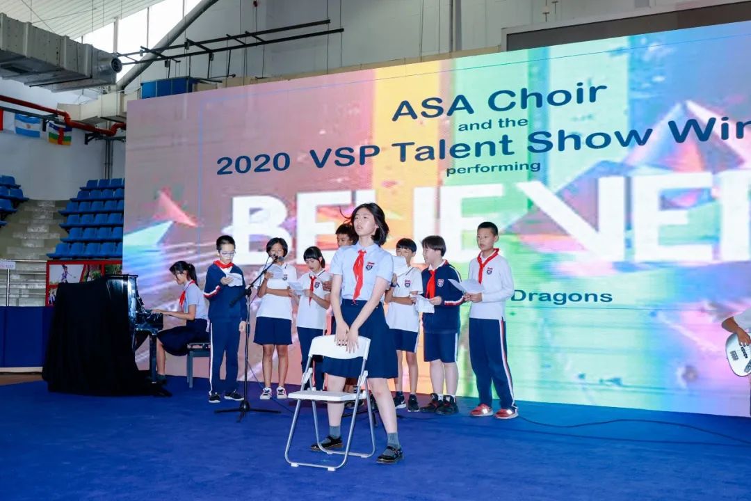 我们同时也看到了VSP中学部“达人秀”冠军的再度登台,我们的冠军和ASA合唱团一起带来了歌曲《Believer》。